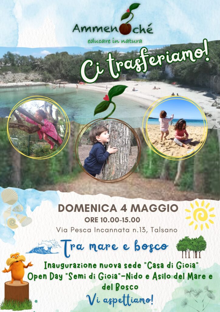 L’associazione Ammenoché – Educare in Natura APS domenica 4 maggio inaugura la sua nuova sede di Via Pesca Incannata n. 13, Taranto.
